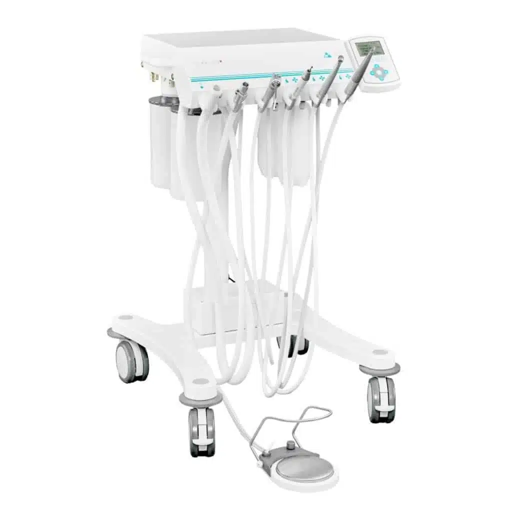 Mobiles autarkes Behandlungscart Combi Cart Clinic HIGHLIGHTS ALL-IN-ONE, AUTARK, MOBIL VOLLE LEISTUNG DER HANDSTÜCKE HANDSTÜCKE FREI WÄHLBAR HOCHLEISTUNGSABSAUGUNG 300 L/MIN LEISER ÖLFREIER KOMPRESSOR DAUERBETRIEB Anwendungsgebiete