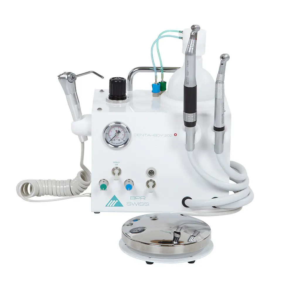 Portable Dentaleinheiten Denta Boy 202 HIGHLIGHTS VOLLE LEISTUNG DER HANDSTÜCKE HANDSTÜCKE FREI WÄHLBAR DAUERBETRIEB TRAGBAR: 5.1 KG Anwendungsgebiete
