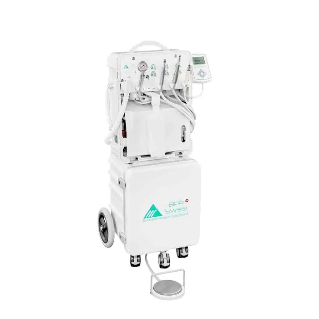 Tragbare und mobile Dentaleinheit Super-Port HIGHLIGHTS ALL-IN-ONE, AUTARK, PORTABEL VOLLE LEISTUNG DER HANDSTÜCKE TURBINE/AIR-POLISHER MÖGLICH HOCHLEISTUNGSABSAUGUNG 300 L/MIN EINFACHSTER TRANSPORT: ROLL- UND TRAGBAR DAUERBETRIEB Anwendungsgebiete