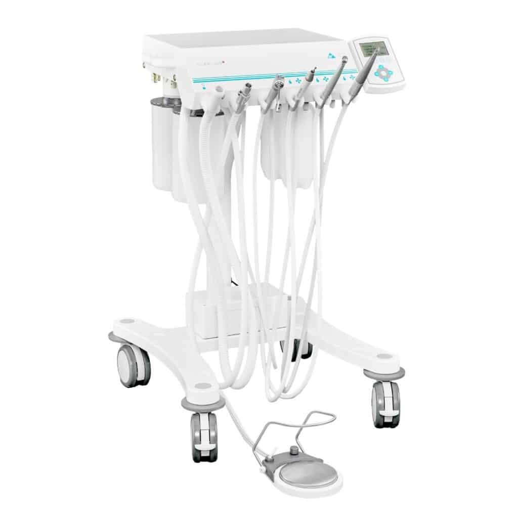 Mobile Dental Unit Denta-Cart Clinic HIGHLIGHTS SUCTION/HANDPIECES ON ONE CART FULL PERFORMANCE OF ALL HANDPIECES HANDPIECES FREELY SELECTABLE HIGH-PERFORMANCE SUCTION 300 L/MIN MOBILE/ROLLABLE CONTINUOUS OPERATION Applications