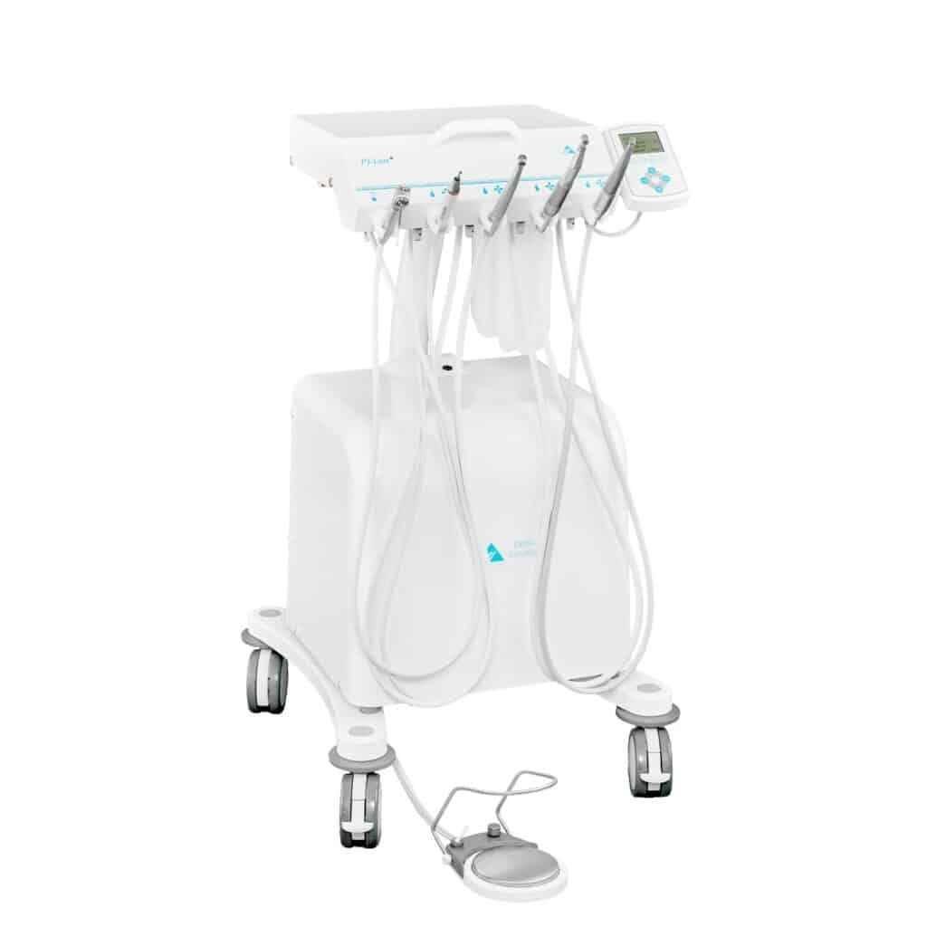 Self-Contained Dental Unit P3-Cart HIGHLIGHTS SELF-CONTAINED AND MOBILE FULL PERFORMANCE OF ALL HANDPIECES HANDPIECES FREELY SELECTABLE SILENT OIL-FREE COMPRESSOR CONTINUOUS OPERATION Applications